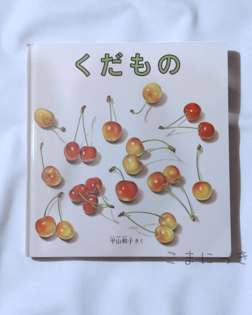 子どもの五感と「どうぞ」の心を育ててくれます。 - 左に丸ごとの果物、右に「さあ どうぞ」と切り分けられた果物が登場するので、